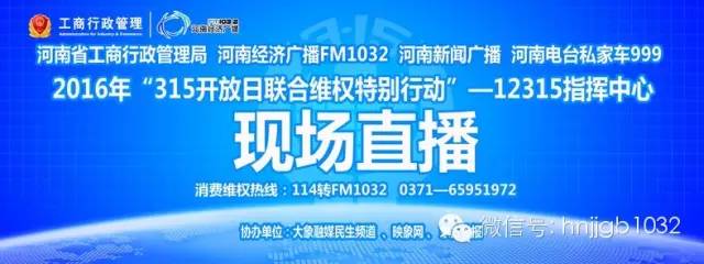 2014年,河南經(jīng)濟(jì)廣播聯(lián)合河南省工商局開展了“315消費(fèi)維權(quán)聯(lián)合行動(dòng)”。我們在省12315消費(fèi)者投訴舉報(bào)中心搭建直播現(xiàn)場,接聽全省聽眾電話,快速分轉(zhuǎn),及時(shí)答復(fù),高效解決消費(fèi)者投訴,1032記者奔赴全省各地市接受消費(fèi)者投訴和舉報(bào),并聯(lián)合工商部門第一時(shí)間解決問題,全部展現(xiàn)了維權(quán)過程。