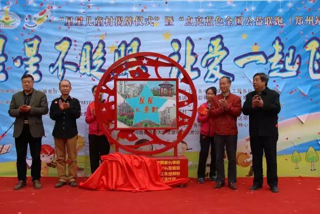 省殘聯(lián)原副理事長王永章、河南電臺農(nóng)村廣播綠色頻道FM1074副總監(jiān)寒江,省殘疾人康復(fù)教育研究中心原主任陳殿奇、張定邦村委黨支部書記兼村委主任張?zhí)駷槲挥趶埗◣痛宓摹靶切莾和濉边M(jìn)行了揭牌儀式,這也是全國首個“星星兒童村”。