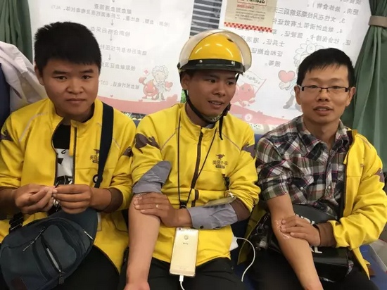 在附近的外賣小哥聽到有獻(xiàn)血活動(dòng),送完外賣后立刻趕來(lái),獻(xiàn)完血后又繼續(xù)工作去了。