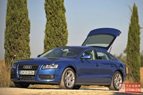 即奧迪A5Cabriolet及Coupe之后,奧迪又在其百年誕辰之際推出了A5SportBack四門版轎跑車。此車采用了溜背設計,在保持跑車流線造型的同時,又增加了后排空間和行李廂容積,是一款地地道道值得我們等待的奧迪旗艦車。