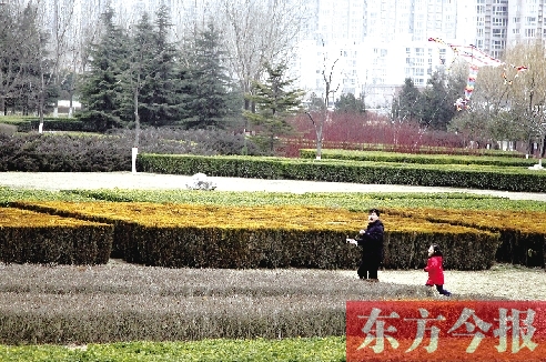 18日,鄭州市航海廣場上一位父親帶著孩子在放風(fēng)箏,孩子歡快的笑聲不時響起(如圖)。