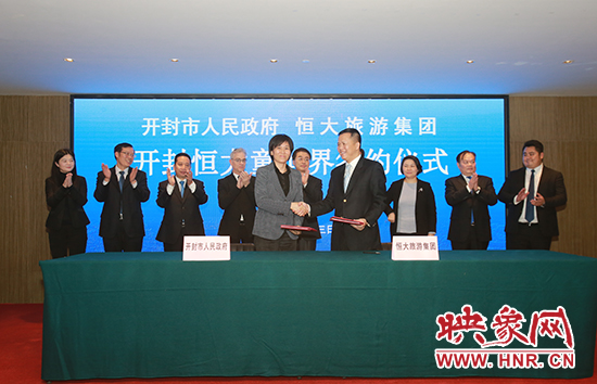 當(dāng)日下午,在河南省委常委、常務(wù)副省長翁杰明和恒大集團(tuán)董事局主席許家印等嘉賓見證下,開封市長侯紅和恒大集團(tuán)常務(wù)副總裁兼恒大旅游集團(tuán)董事長肖恩代表雙方在合作協(xié)議書上簽字。