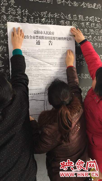 映象網(wǎng)訊(記者 王文凱 通訊員 李文利 趙露瀅)新春佳節(jié)將至,為減少環(huán)境污染,切實保障轄區(qū)人民群眾身體健康和財產(chǎn)安全,預(yù)防安全事故發(fā)生,滎陽市索河辦堅決落實上級禁限放煙花爆竹有關(guān)會議精神,將禁限放煙花爆竹宣傳工作作為當(dāng)前重中之重,采取五項措施,全力以赴做好禁限放宣傳工作。