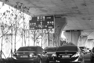 經(jīng)過(guò)近20分鐘的挪動(dòng),記者終于“逃離”此路段,駛?cè)肽详?yáng)路立交。
