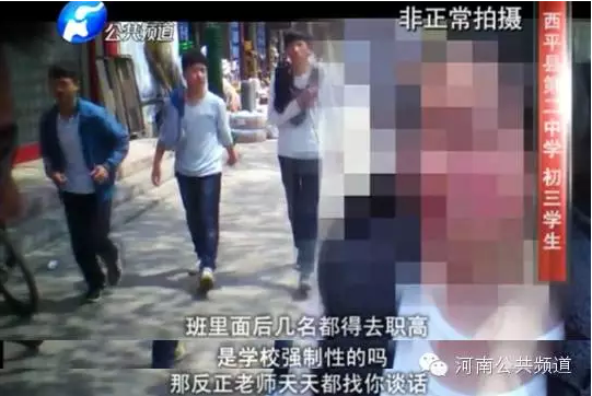 而記者還了解到,這些成績不理想的學生目前大多已經(jīng)離校,絕大部分都就讀了河南省西平縣職業(yè)教育中心——一所職業(yè)高中。