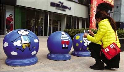 4、鄭州街頭隔離墩“穿”卡通外衣萌翻路人 網(wǎng)友點贊