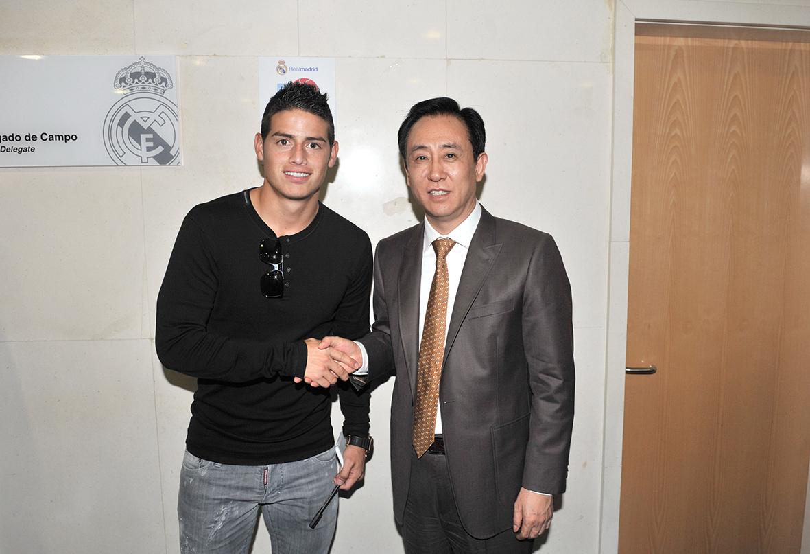 2、西班牙當?shù)貢r間9月19日下午,許家印在皇馬主席弗洛倫蒂諾陪同下在馬德里觀看了皇馬比賽,賽后許家印分別接見了C羅、J羅、本澤馬等皇馬球星,并進行了交流。