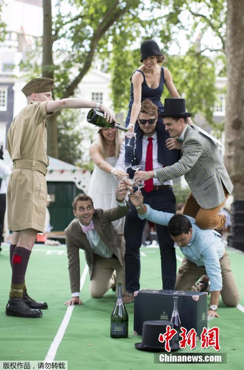 當(dāng)?shù)貢r(shí)間2015年7月11日,英國倫敦,貝德福德廣場花園舉辦一年一度的“紳士運(yùn)動(dòng)會(huì)”。這是一個(gè)不以打破記錄為榮,而專為紳士打扮裝帥耍酷而設(shè)的趣味運(yùn)動(dòng)會(huì),比賽項(xiàng)目包括“雨傘騎(車)斗”、“燙衣板沖浪”、“背人賽跑”等,現(xiàn)場參加者不一定會(huì)出汗出力,但一定要打扮成傳統(tǒng)紳士淑女風(fēng)格,而叼煙、小酌一杯的鏡頭更讓人覺得這是一場嘉年華。
