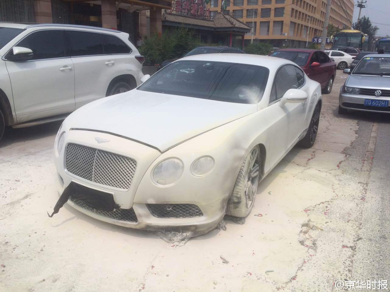 上午10點(diǎn),回龍觀龍禧三街一酒店門(mén)口,一價(jià)值400多萬(wàn)賓利車(chē)起火。目擊者稱(chēng),新娘從賓利下車(chē)后,車(chē)底因留有未熄滅鞭炮導(dǎo)致左前胎起火,后被撲滅?;佚堄^消防中隊(duì)初步判定為遺留火種引發(fā)。車(chē)主稱(chēng),修車(chē)費(fèi)至少要20多萬(wàn)。(記者 賈婷 趙思衡)