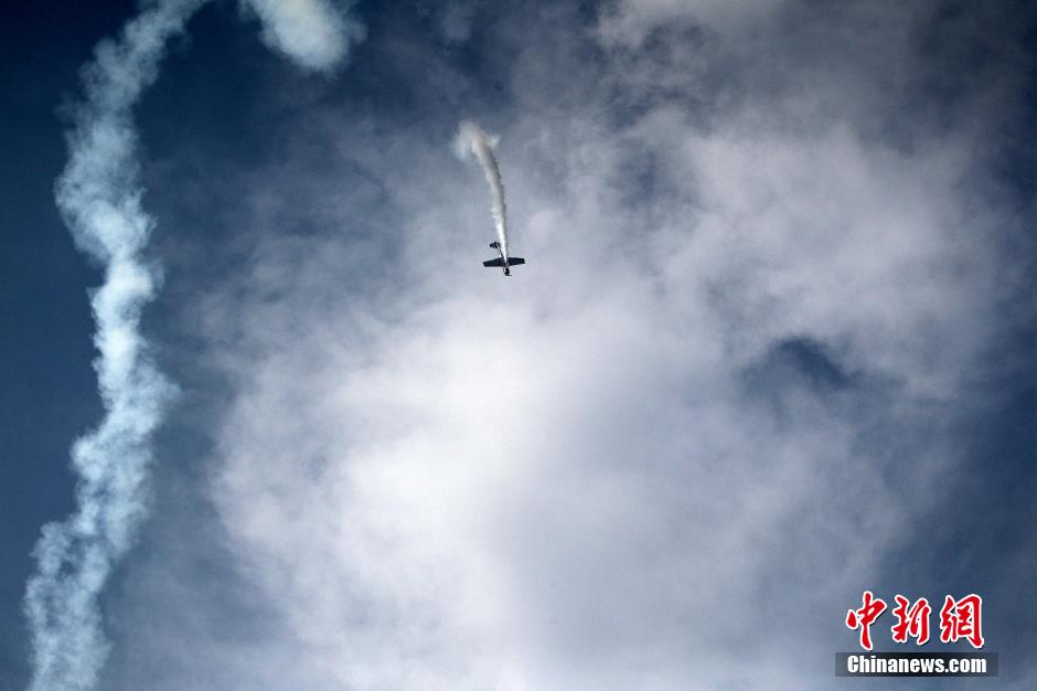 9月24日,河南鄭州上街機場,參加2015鄭州航展的特技飛行員們,穿云破霧在加緊練習(xí)表演動作,沖刺9月25日開幕的鄭州航展。中新社記者 王中舉 攝