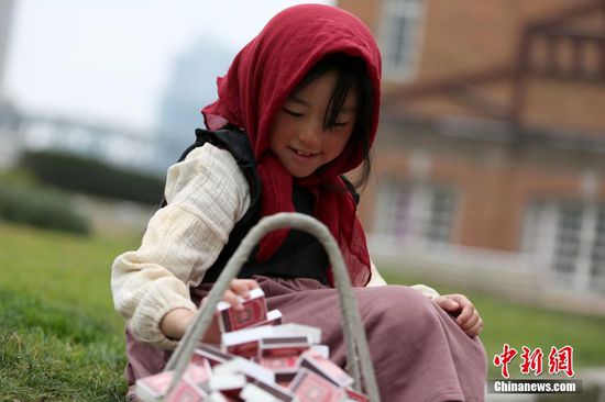 1月12日,上海外灘街頭出現(xiàn)一位小女孩,她身穿古典長裙,頭裹赭紅色圍巾,挎著裝滿火柴的小竹籃,在寒風(fēng)中向過往的路人送小火柴。據(jù)了解,這是一次“愛心衣櫥”幫助中國山區(qū)孩子擺脫寒冷的愛心募捐活動。在寒冷的冬天,他們嘗試以“賣火柴的小女孩”活動,喚起社會的關(guān)注,把更多的溫暖傳遞到中國山區(qū)寒冷孩子的手上。只要掃一掃火柴盒上的二維碼,就可以立刻向山區(qū)孩子送上一套溫暖新衣。張亨偉 攝