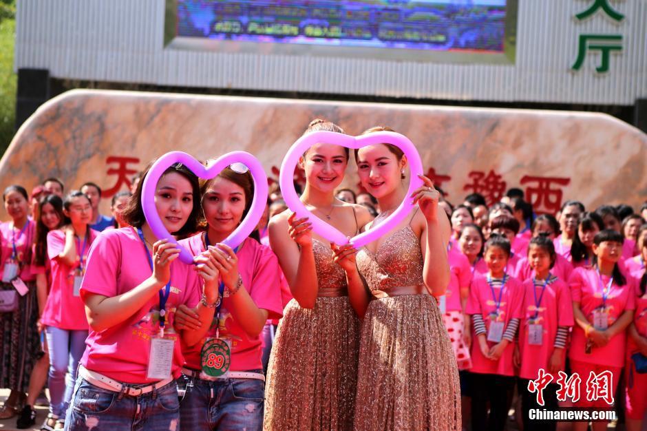 5月29日,河南三門峽,來自全國的老中青100余對雙胞胎聚集一起拍攝合影照,他們手拉手“向天笑”,一樣的裝束、一樣的臉龐,看暈觀眾,仿佛走進了重影的世界。 王中舉 攝