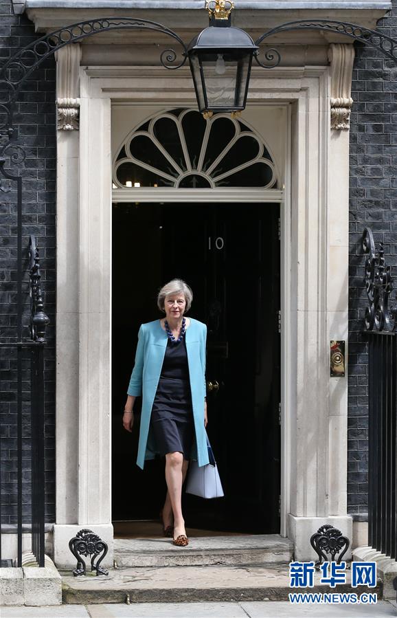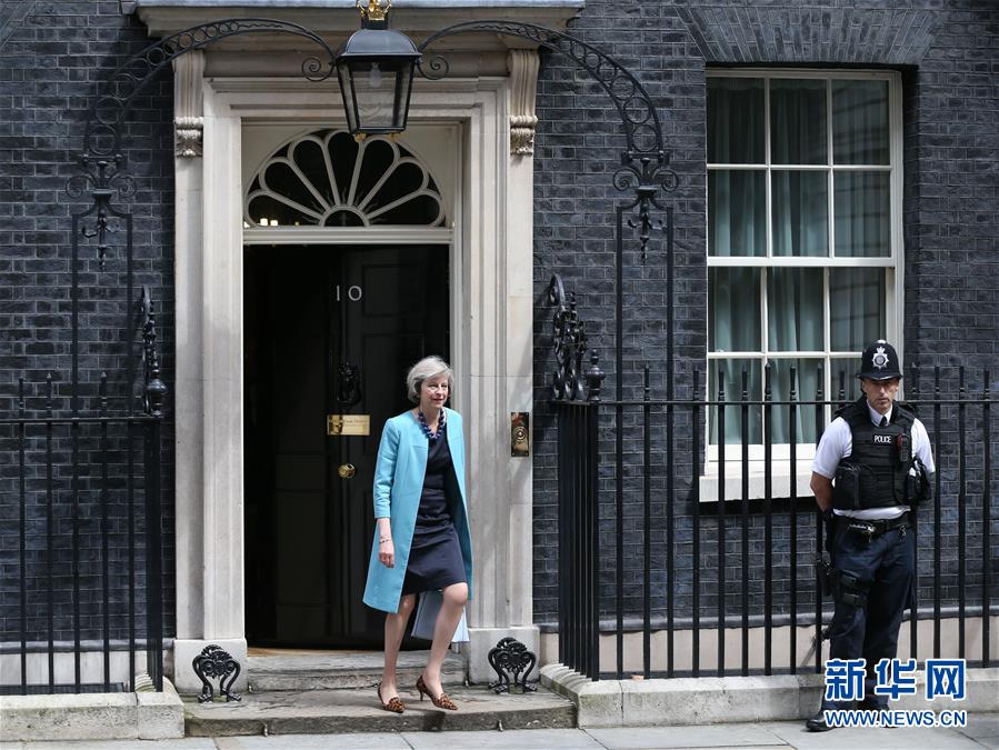 這是6月27日英國(guó)內(nèi)政大臣特雷莎·梅參加完內(nèi)閣會(huì)議從倫敦唐寧街10號(hào)走出的資料照片。 新華社記者韓巖攝