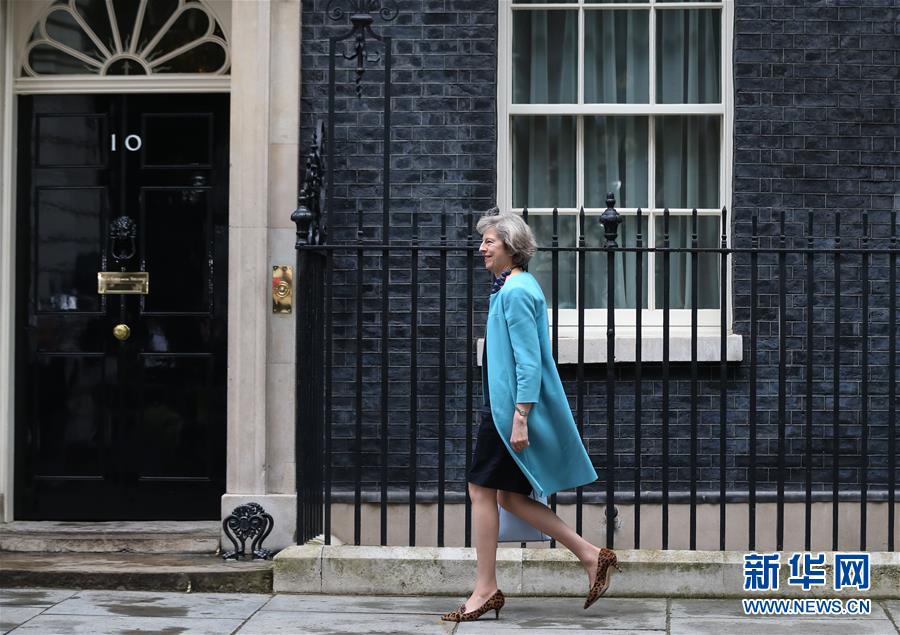 。這是6月27日英國(guó)內(nèi)政大臣特雷莎·梅參加完內(nèi)閣會(huì)議從倫敦唐寧街10號(hào)走出的資料照片。 新華社記者韓巖攝