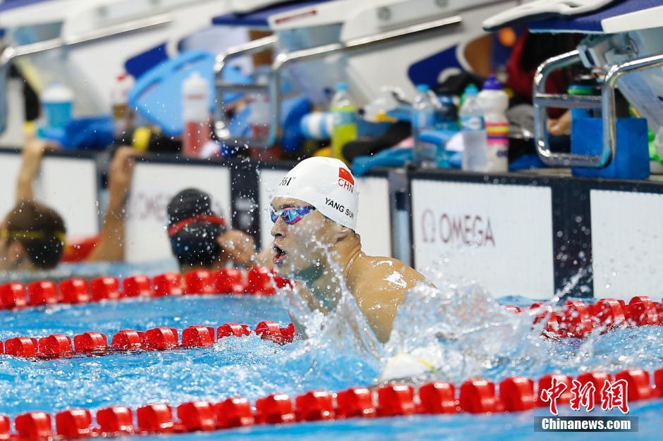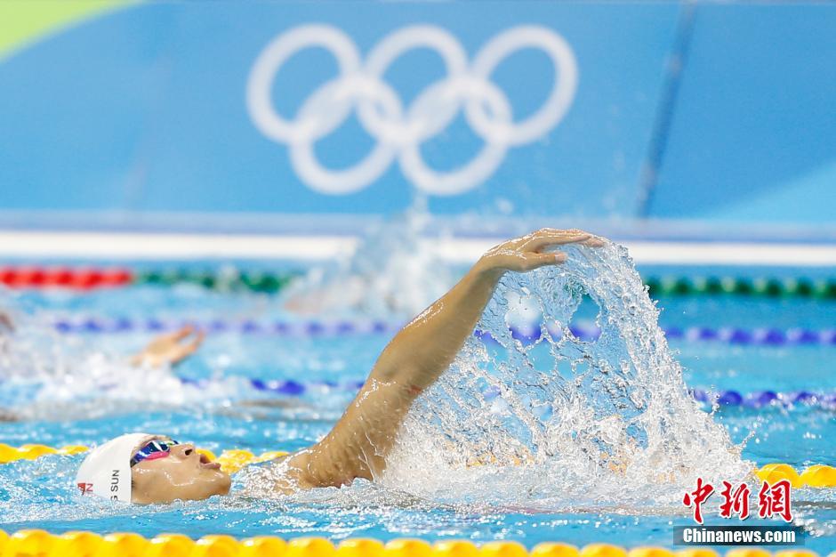 當?shù)貢r間8月4日,里約奧林匹克水上項目體育館,中國游泳選手孫楊在泳池內(nèi)進行賽前訓練。中新網(wǎng)記者 盛佳鵬 攝