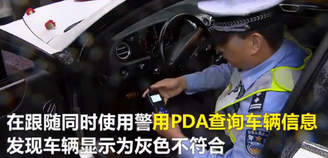 民警在跟隨過程中,使用警用PDA查詢車輛信息,發(fā)現登記車輛為灰色,明顯不是眼前的白色跑車,隨即將婚車車隊攔停后,詢問駕駛員車輛來源。