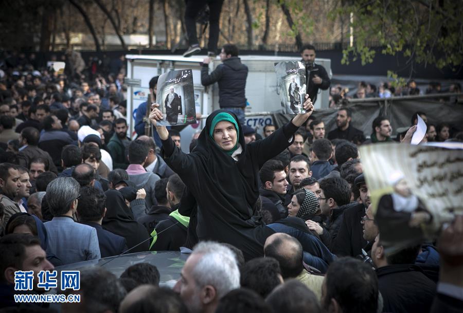 1月10日,在伊朗德黑蘭,一名女子手持伊朗前總統(tǒng)阿克巴爾·哈什米·拉夫桑賈尼的照片。新華社發(fā)(艾哈邁德·哈拉比薩斯攝)