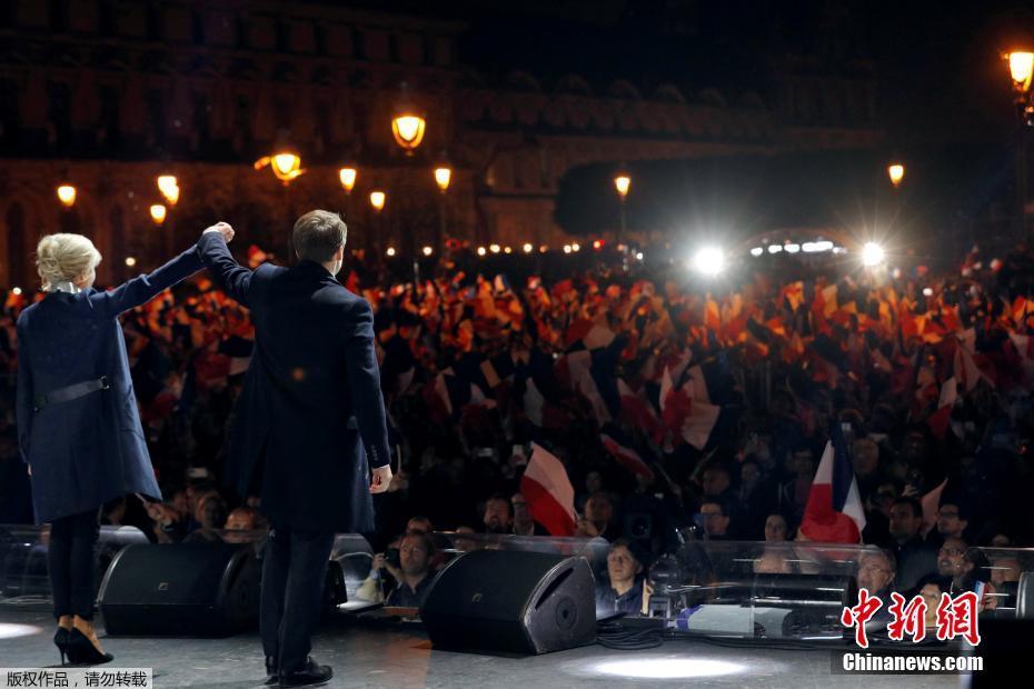 巴黎時間5月7日晚,法國總統(tǒng)選舉第二輪投票初步計票結(jié)果顯示,中間派獨立候選人、“前進”運動領(lǐng)導(dǎo)人埃馬紐埃爾·馬克龍以大幅優(yōu)勢擊敗極右翼政黨“國民陣線”候選人馬麗娜·勒龐。年僅39歲的馬克龍由此成為法國史上最年輕的總統(tǒng),也成為世界上最年輕的大國領(lǐng)導(dǎo)人。圖為馬克龍的支持者在得知馬克龍當選后歡呼。中新社記者 龍劍武 攝
