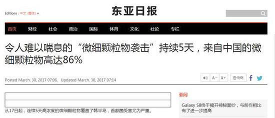 文章說,許多韓國人指責(zé)這些污染物是從中國飄來的,但韓國專家表示大部分污染是“國產(chǎn)貨”。