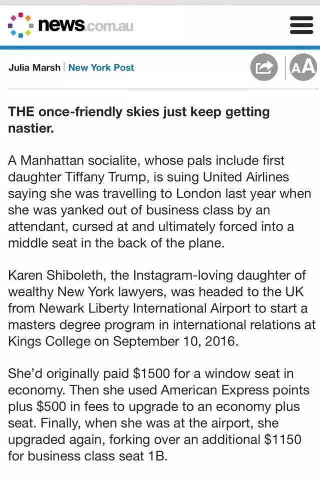 “美聯(lián)航”是怎么把這位“名媛”給惹惱了呢?事情的起因是這樣的。。。