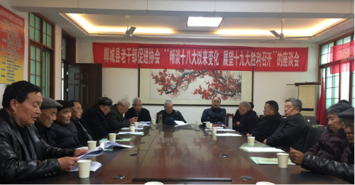 2017年3月24日,鄲城縣老干部促進協(xié)會“暢談十八大以來變化 展望十九大勝利召開”座談會在鄲城縣老干部活動中心成功召開。本次會議由鄲城縣老干部促進協(xié)會秘書長吳金德主持,鄲城縣委常委組織部長侯磊、老干部局長徐明堂等近50名老干部參與此次座談。會議一開始,老干部促進協(xié)會會長趙永祥宣布了領(lǐng)導(dǎo)班子的補充和聘請顧問的通知,副會長王新民宣讀周口市老干部5號文件,常務(wù)副會長崔允忠做了2016年工作回顧及2017年工作計劃。