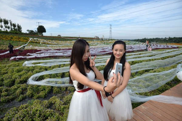 9月24日,成都一景點內(nèi)現(xiàn)4100米長的婚紗,該婚紗耗時一個月制成,大約花費4萬元。成都商報/東方IC