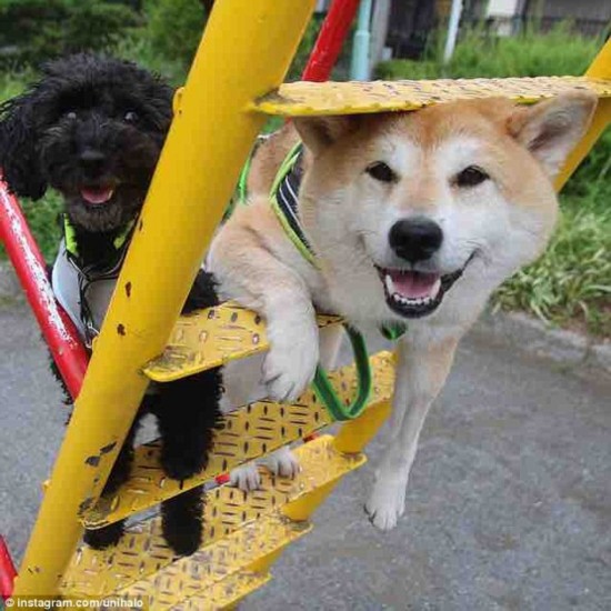 Uni-Chan今年6歲,現(xiàn)與主人居住在東京。據(jù)它的主人稱,Uni-Chan每天都會(huì)去戶外散步兩三個(gè)小時(shí),它尤其喜歡高的地方以及各種游樂(lè)場(chǎng)設(shè)施。除了蕩秋千,這只小柴犬還喜歡玩蹺蹺板、爬繩子,或是帶著草帽與它的好朋友——一只黑色的貴賓犬嬉戲。