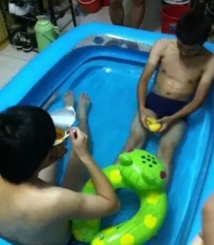 對于沒有空調(diào)的宿舍,夏天是最難熬的??磥頌榱吮苁睿瑐兿氡M了各種奇葩招數(shù)??!宿舍居然還有泳池??!很清涼啊??!有木有?。?!