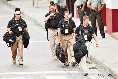 美國特工在美洲峰會(huì)會(huì)場(chǎng)外巡視。