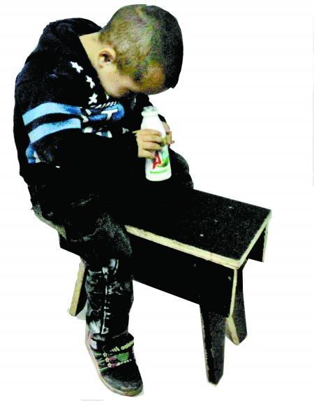 小劉浩有自閉癥的典型特征,一個(gè)瓶子他能坐在凳子上玩半天而且非常認(rèn)真。
