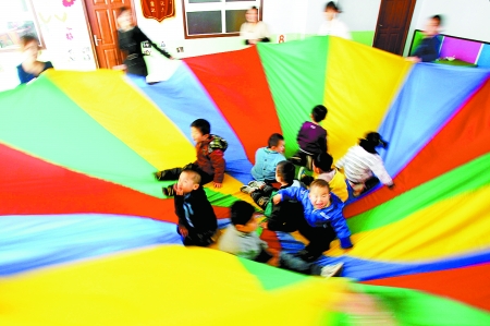 昨天上午10時(shí)許,記者來(lái)到鄭州康達(dá)能力訓(xùn)練中心,未走進(jìn)教室,已聽(tīng)到孩子們“嘰嘰喳喳”的叫聲。在其中一教室中看到,100多個(gè)可愛(ài)的孩子正在進(jìn)行康復(fù)訓(xùn)練,有的在老師及家長(zhǎng)配合下做模式操,有的正在做親子游戲。
