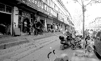 在潁河西路,道路兩側(cè)的機(jī)動(dòng)車隨意停放,路面污水橫流、垃圾到處都是,路南側(cè)的商戶更是將非機(jī)動(dòng)車道全部占用。