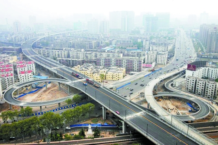 昨天上午,京沙快速通道工程工程監(jiān)理王柳洋,帶記者體驗了該路高架橋路段。由京沙快速通道與中原路交叉口北上,路中央已畫有兩條黃線。行至解放路高架橋頂端,可見從該路分出的匝道,形成兩條線路一南一北并入京沙快速通道。向北駛?cè)?strong>金水路、北三環(huán),向南駛?cè)胫性贰⒛先h(huán),“兩條高架橋的連接,能最大限度地緩解二七廣場區(qū)域及未來火車站西出站口的交通壓力?!蓖趿蠓Q,在京沙快速通道一期工程中,跨解放路高架橋、隴海鐵路、金水路系最為復(fù)雜的工程。