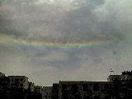 昨天中午12點(diǎn)20分,家住西開發(fā)區(qū)的王女士打來電話:我們這里沒有下雨,但是天空中出現(xiàn)了彩虹,我覺得好奇怪呢,自己就拍了兩張照片。