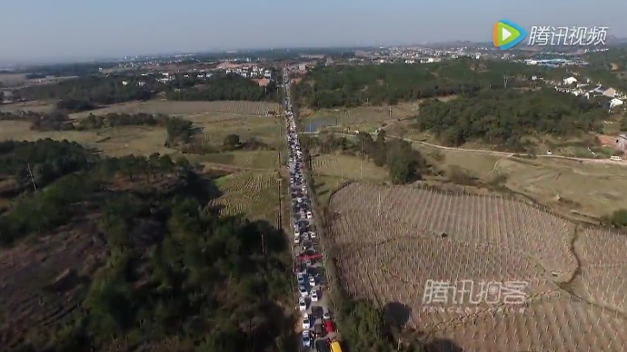 航拍農(nóng)村拜年車隊堵爆馬路