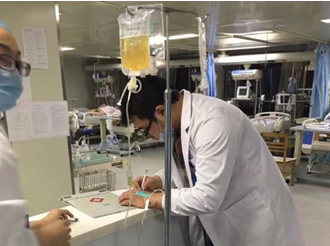• 醫(yī)生打著吊水給病人急救