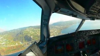 駕駛艙視角看飛行員駕駛飛機(jī) 頂強(qiáng)橫風(fēng)驚險降落