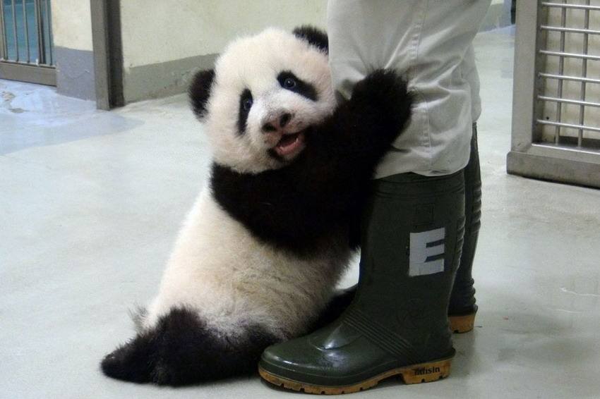 萌熊貓“騷擾”飼養(yǎng)員 別工作了陪我玩!