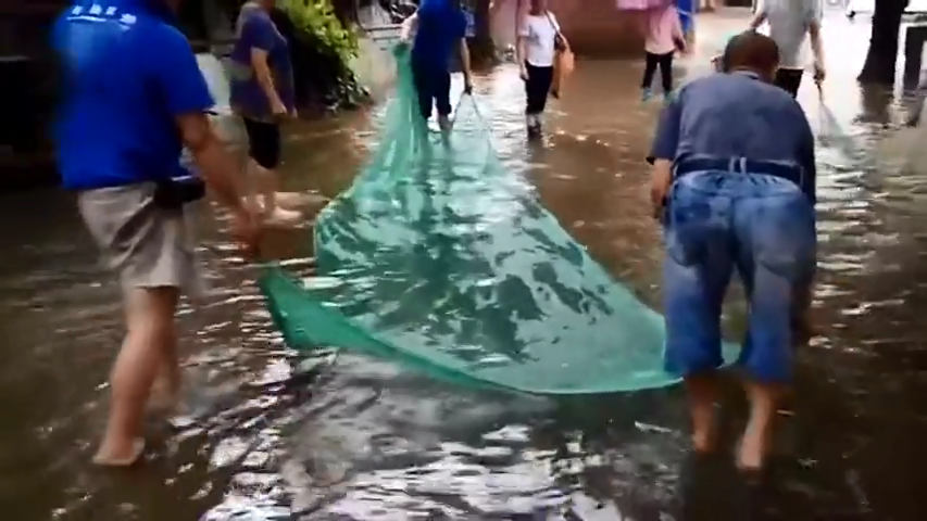 臺(tái)風(fēng)過境佛山 市民上街撈魚