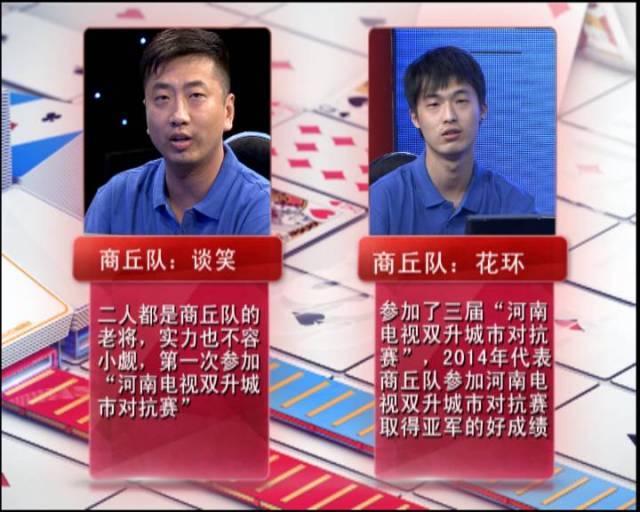 商丘隊派出了“花環(huán)”和“談笑”。兩人都是商丘隊的老將,實(shí)力不容小覷?!盎ōh(huán)”曾參加三屆“河南電視雙升城市對抗賽”;2014年代表商丘隊參加“河南電視雙升城市對抗賽”,并取得亞軍的好成績。“談笑”第一次參加“河南電視雙升城市對抗賽”。